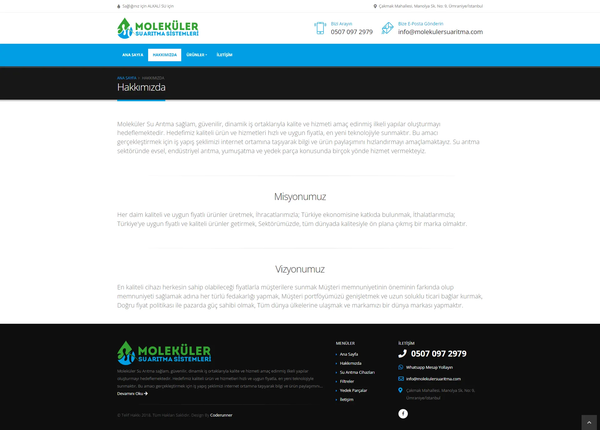 Su arıtma sistemleri hizmeti veren "Moleküler Su Arıtma Sistemleri" profesyonel web tasarım hizmeti için bizi tercih etti.