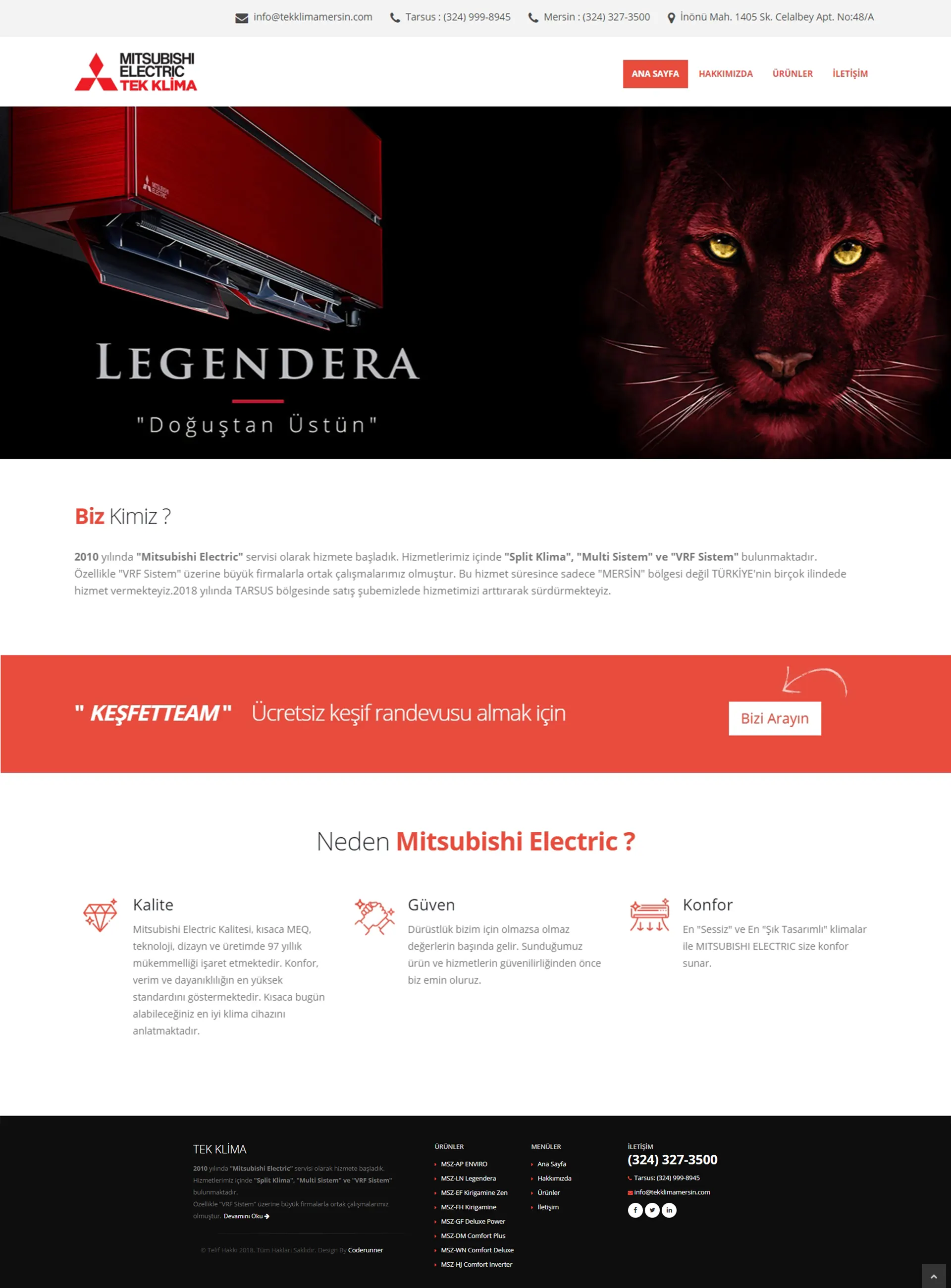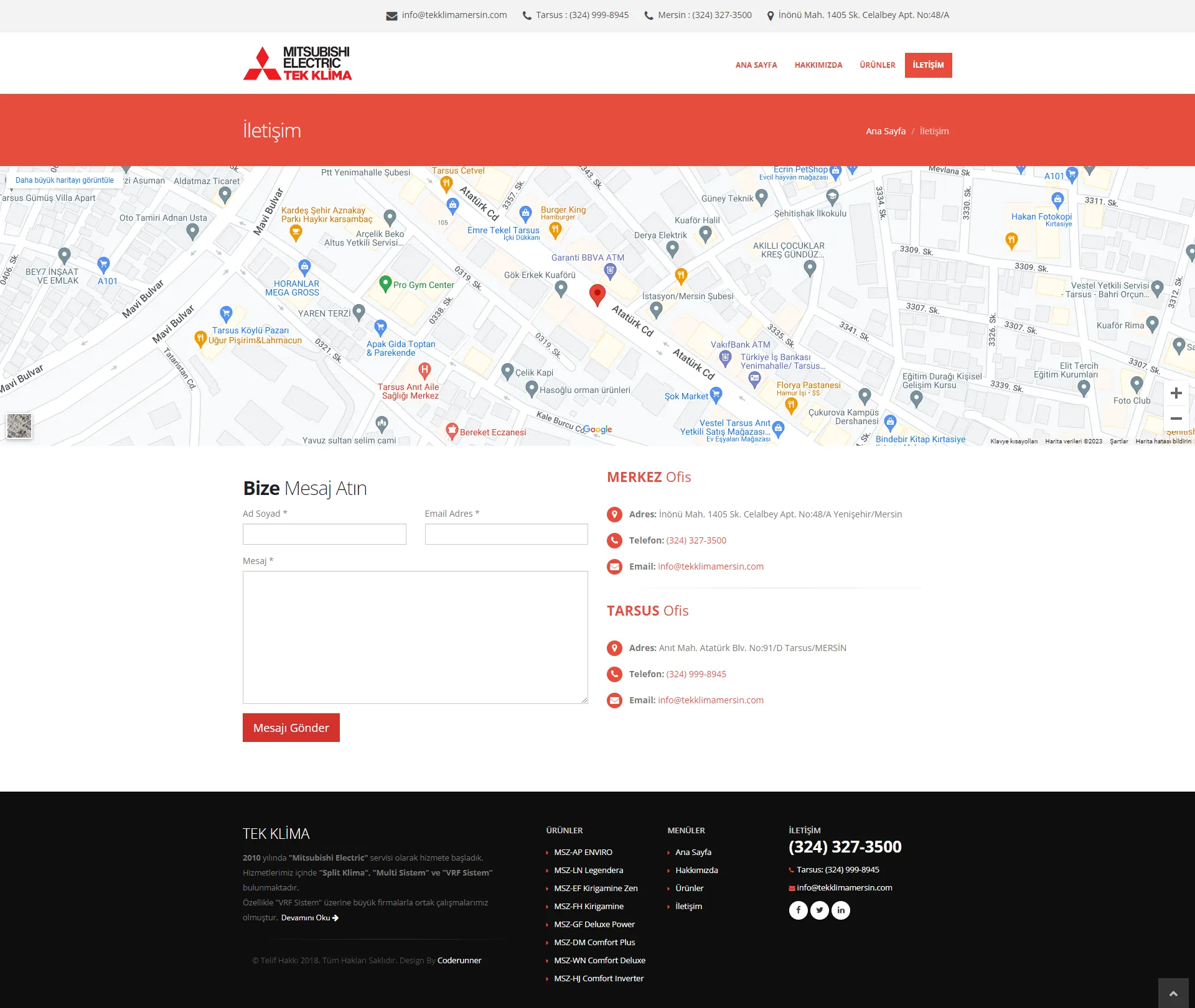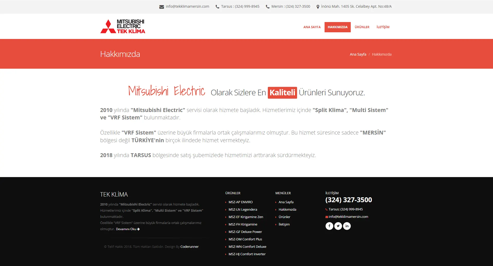 Mitsubishi Electric servisi Split Klima, Multi Sistem ve VRF Sistem hizmeti veren "Tek Klima Mersin" profesyonel web tasarım hizmeti için bizi tercih etti.